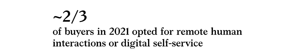 Modern B2B buyers are very clear on what they want: a personalised experience, convenience of self-serve, and relevant information to help them learn. A significant portion of the buyer's journey takes place before the buyer even interacts with a salesperson. This gives a unique opportunity for you to engage with buyers and exert a real influence on their decision-making process.
