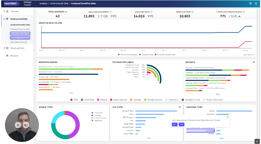 In this case below, I’ve drilled down further by selecting the option to preview documents that included sort codes. Again, the user can always navigate to any of the other available dashboards in this branch, drill down further or even go back to the home page.