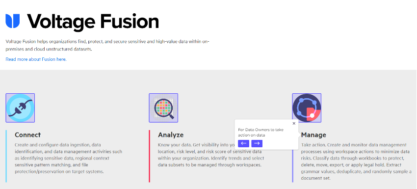 The solution being used in this example along with Demoboost is ‘Voltage Fusion’ – A cloud Data Security Platform to discover, classify, protect, and govern data to reduce privacy risk.