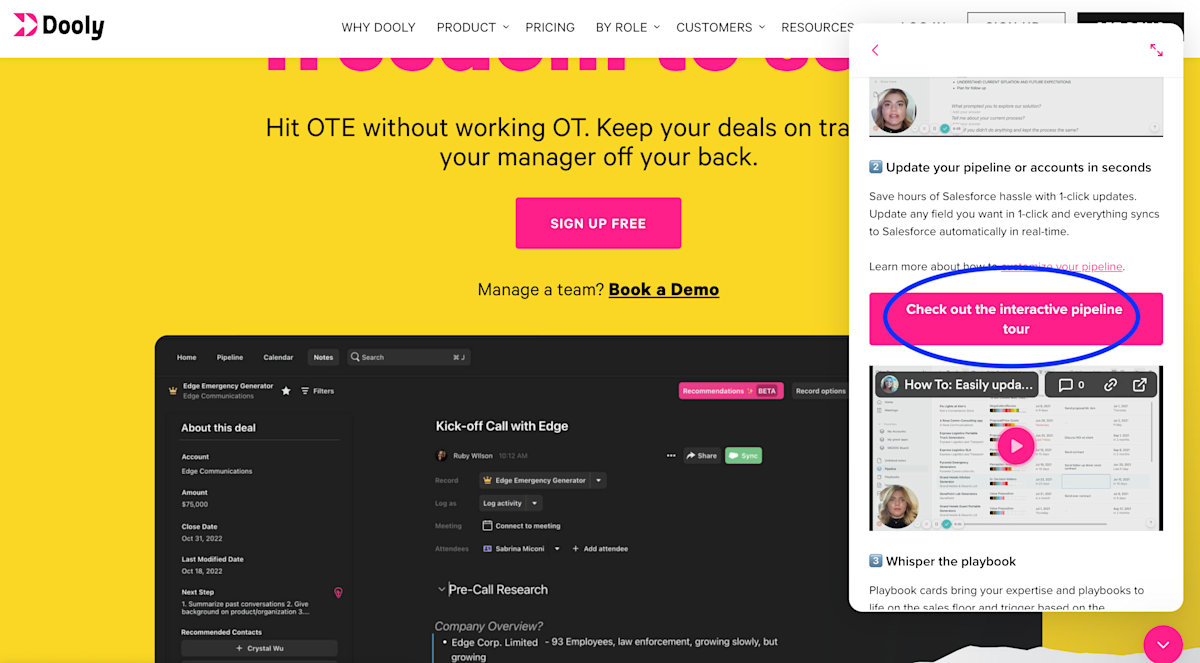 Here’s how Dooly uses it in their chat, explaining their features with an interactive demo for better understanding of the product.