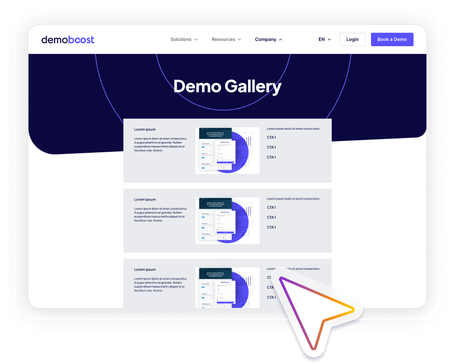 The Demo Gallery transforms passive interest into active evaluation, moving buyers from "learning what you do" to "understanding how you solve my specific problem."