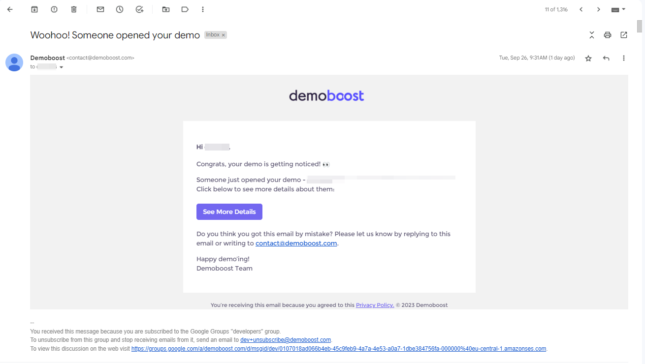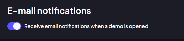 When enabled, you will receive an email notification every time a viewer opens your demo link.