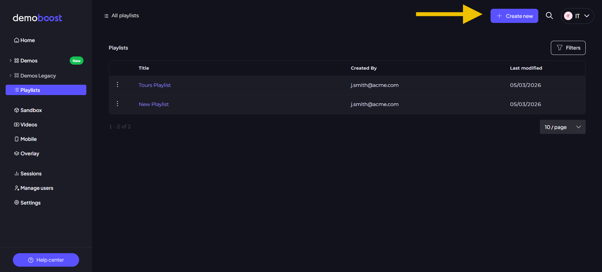 Click on your new playlist to open the editor. At the top, you can rename the playlist to stay organized (e.g., by prospect name or use case).