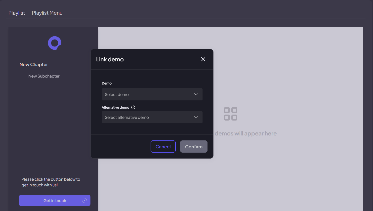 Link your content. Click to link a demo to a specific chapter and select the relevant demo from your library.