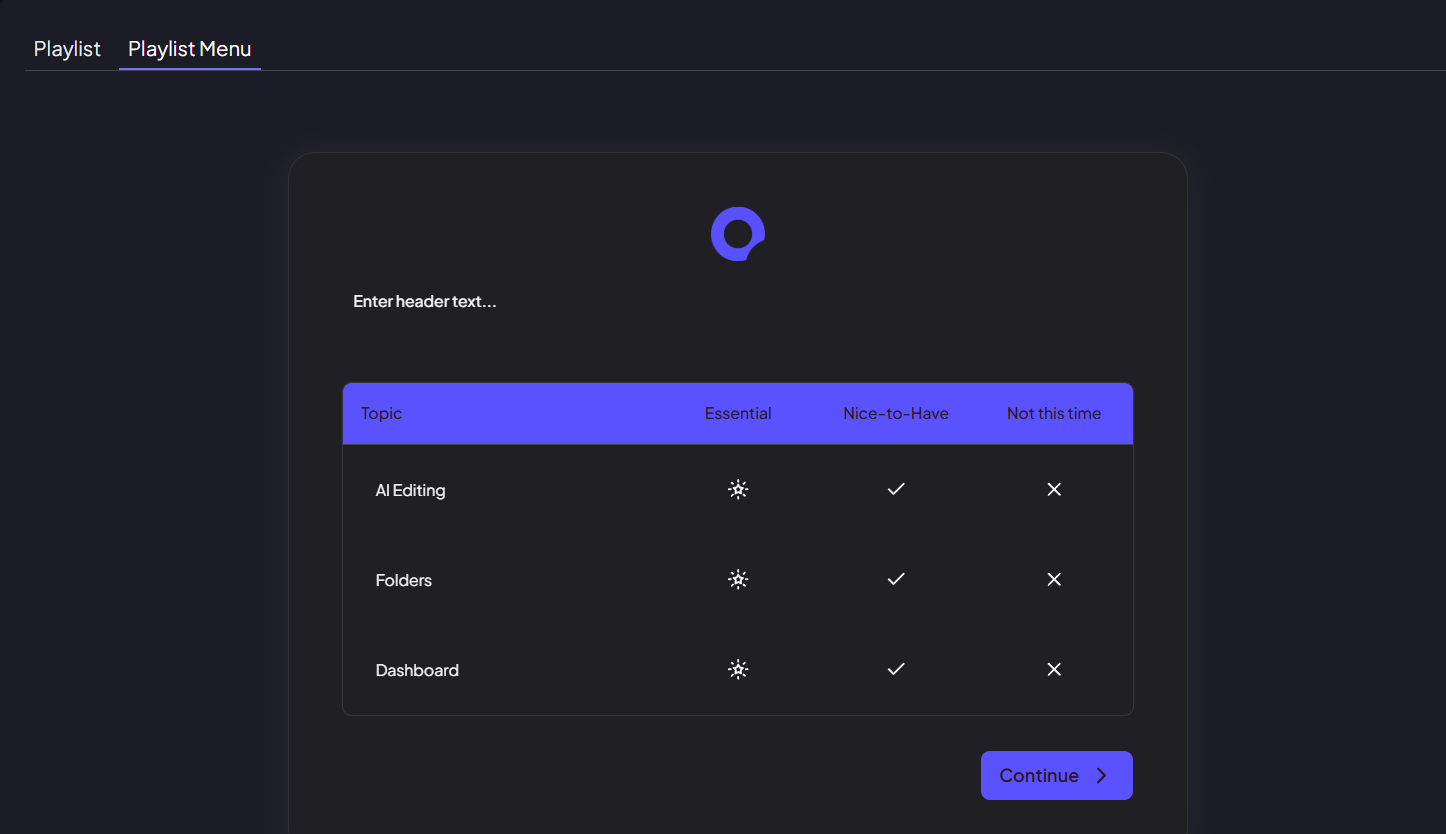 Dynamic Playlists allow you to create personalized, high-intent demo experiences. By using the Playlist Menu, you let prospects tell you exactly what matters to them, turning your demo into a discovery powerhouse that syncs directly with your CRM.