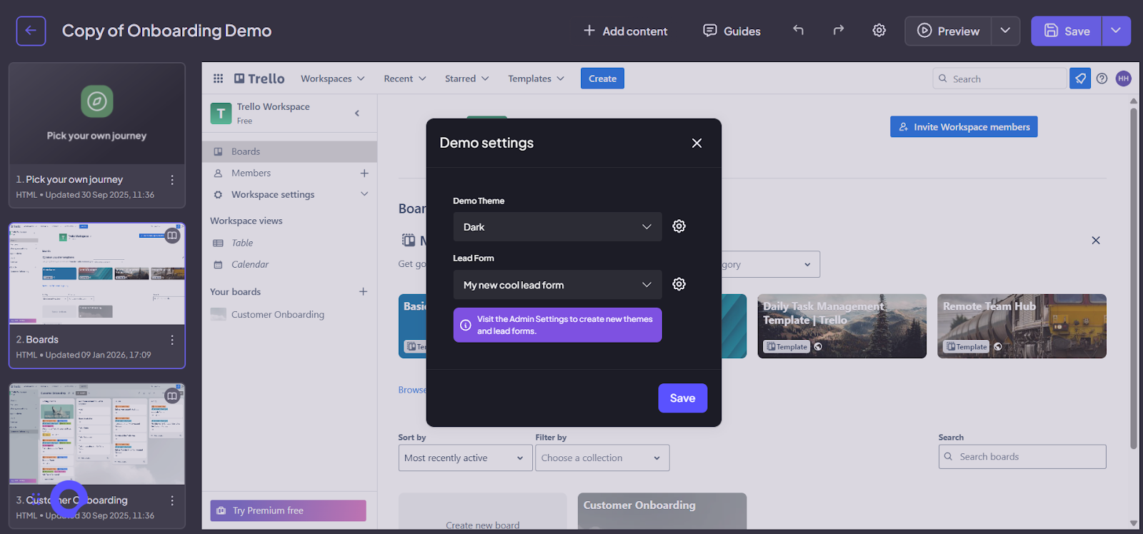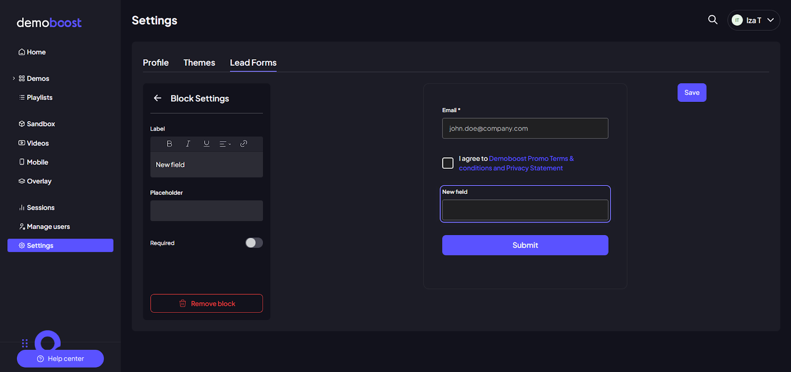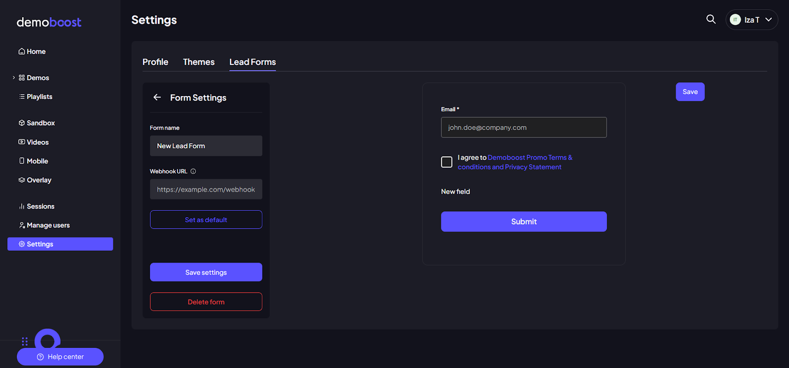 This guide details the process for creating, customizing, and applying a new lead form to your demos.